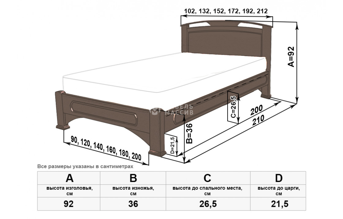 Прочная кровать Лаура сделана из экологически чистого древесного массива. Модель имеет чуть изогнутое изголовье с двумя продолговатыми отверстиями и крепкий каркас с устойчивыми ножками. Изделие, которое можно купить по выгодной цене в нашем интернет-магазине, представлено в различных комплектациях. Осуществляется доставка на дом по Ульяновску и Ульяновской области.| Размер | Цена | |