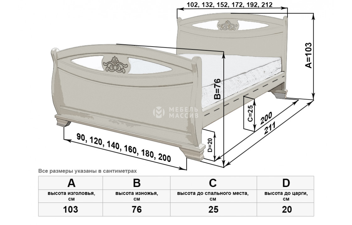 Кровать Эльза имеет две идентичные спинки, отличающиеся аккуратной изогнутостью, декоративными углублениями и цветочными узорами. Изделие, которое можно купить по специальной цене в нашем интернет-магазине, оснащено устойчивыми ножками, защищающими напольное покрытие от повреждений. Осуществляется доставка на дом по Ульяновску и Ульяновской области.| Размер | Цена | |