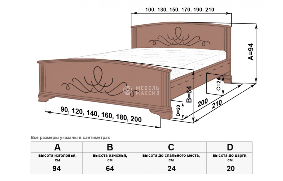 Прочная кровать Нова изготовлена из экологически чистого древесного массива. Модель имеет украшенные резьбой сплошные спинки, плавно переходящие в устойчивые ножки для защиты напольного покрытия. Изделие, которое можно купить в нашем интернет-магазине по демократичной цене, покрыто первоклассным лаком. Осуществляется доставка на дом по Ульяновску и Ульяновской области.| Размер | Цена | |