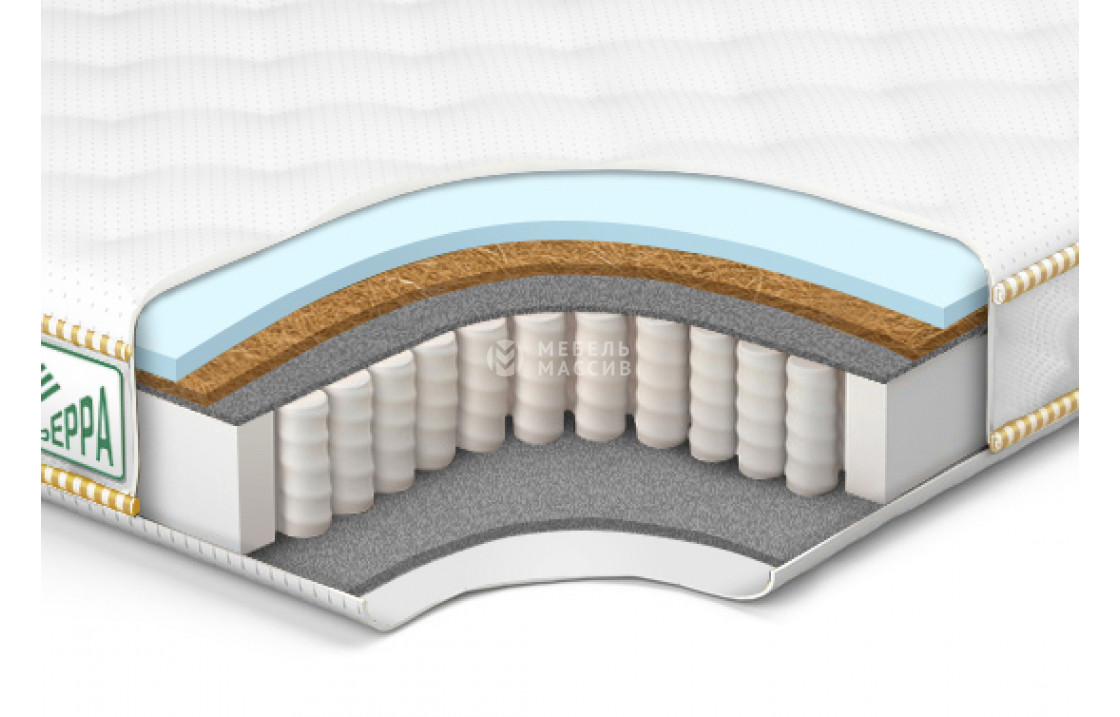 Кокос - переплетенные волокна кокосового ореха, растительного происхождения. Исключительные свойства кокоса в прочности, упругости и гигиеничности. Материал придает жесткости матрасу. Обладает отличной вентилируемостью, устойчив к любой влажности и перепадам температуры, гипоаллергенный и долговечный.