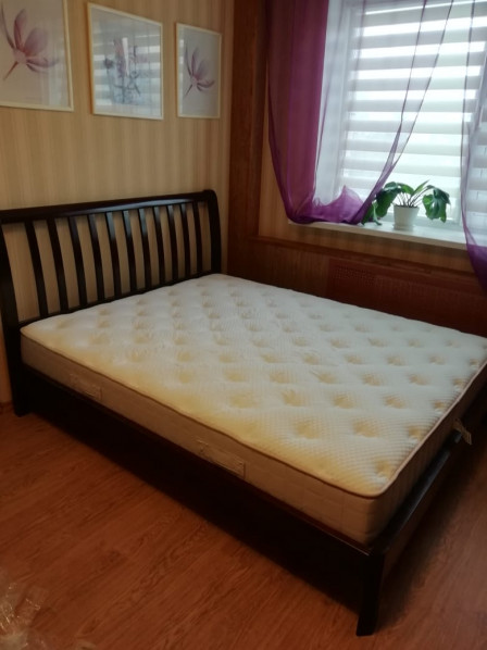 Кровать двуспальная из натурального дерева Беатрис, массив сосны, цвет венге 3. Изделие укомплектовано матрасом с ортопедическим эффектом.