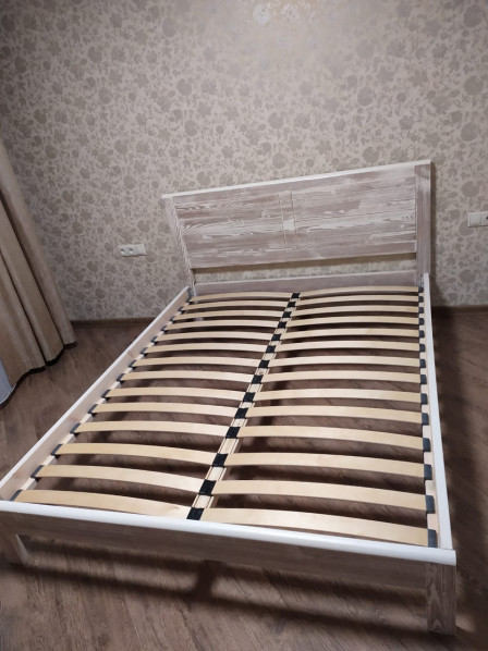 Кровать из натурального дерева Верона, массив сосны, цвет выбеленный дуб. Изделие укомплектовано матрасом с ортопедическим эффектом.